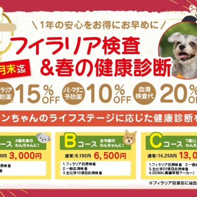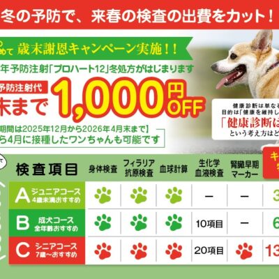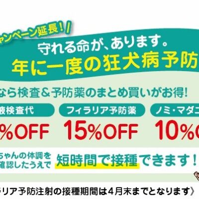 各種予防接種(フィラリア予防、狂犬病)を承っています。去勢手術、避妊技術もお気軽にご相談ください。